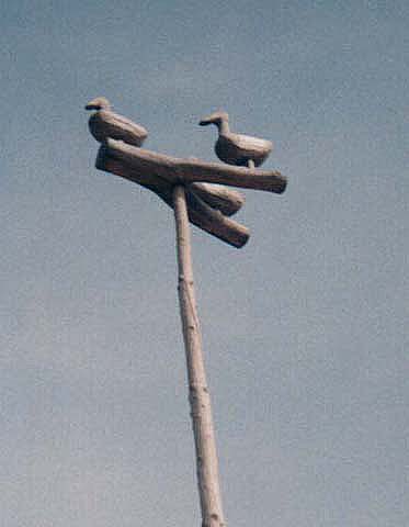 The Jintobaegi is a tall pole supporting a trio of wooden ducks. Since it's near the entrance to