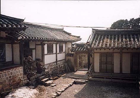 (1392-1910). Songyojong was built over about 200 years, starting in 1756. That doesn't mean it took that long to make it habitable, but rather that it was built, and then rebuilt and extended over a grand total of two centuries. Songyojang is now a museum (designated Important Folklore Material No. 5 by the Korean government), with tool and clothing displays. However, unlike most museums, part of it is actually still a home to the current generation of the original family. The English nickname "House of a Hundred Rooms" is only 99% correct. Songyojang actually has 99 rooms. During the Choson (Joseon) Dynasty, only homes of royalty were allowed to have 100 or more rooms. You'll find Songyojang and Ojukon (Ojukheon) near Kyongpo (Gyeongpo) Lake in Kangwon Do (Gangwon Province).