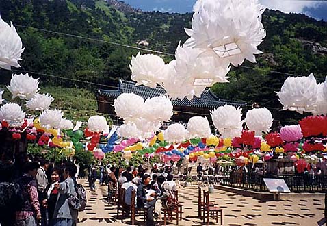 great interest in the city, but that the Buddha's birthday celebrations were something to see. I can't agree with the first part of that statement. But the book was right about the Buddha's birthday. Kangnung does do it up right, with tremendously colorful festivities. They decorate the entire city with lanterns, and the temples put on shows and parades. The Buddha's birthday celebration is one of Korea's lunar calendar holidays - it's on the eighth day of the fourth lunar month.
