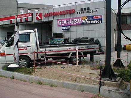 growing on it. Even this auto repair workshop has a tiny triangular vegetable garden, protected by a pink ribbon.