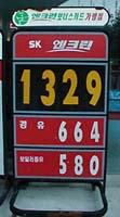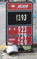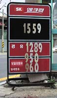 in Europe. The bad news is that it's quite a bit more expensive than in the US, and getting pricier all the time. Forget what the Korea Herald (Korea's English-language newspaper) says about fuel prices. Statistics are OK as far as they go, but these pictures show what people really pay. For years, I shot pictures of the same gas station's sign every time we were in Kangnung (Gangneung). You can see above what's been happening over the years since Margaret started teaching there. Between May and September of 2000, when most of the rest of the world was seeing eye-popping price increases, gasoline prices in Korea rose only 9 percent. But look at the next line down. That's for kyong yoo (light oil, or Diesel fuel). Over the same 4 months it shot up 18 percent. By 2004 gasoline had increased only 14% over May 2000, but diesel was up 63%. Fast-forward to 2006 -- gas is up 28% over May 2000, but diesel fuel has more than doubled. When we next visited Korea in 2014, I didn't manage to get a pic of the same station's sign (sorry). However, we saw gasoline prices running 1800-1850 won per liter, and Diesel prices in the 1600-1700 range. So in the 14 years since our first time in Korea, gas has jumped 50%, and Diesel has more than tripled. What's going on here? Well, Korea has no petroleum. They import all that they use. Their government is tinkering. So far, they haven't exactly managed perfect results.Until the 1980s not many Koreans could afford cars. As they got more affluent and took the plunge, they mostly bought tiny, high-MPG cars. But no more. Gas-guzzling SUVs and vans are now the hot ticket. You might be surprised to hear that the US has something to do with this. In the late 1990s, the American government pushed Korea to cut their purchase and use taxes on large vehicles. Why? Because US automakers wanted to sell in Korea, but US automakers don't make tiny cars.At the time, it wasn't legal to sell small Diesel or LP gas cars to Korea's regular consumers. Now, Diesel fuel produces better mileage, but more smog. LP gas gives lower mileage, but much less smog. Both these fuels were supposed to be used only in commercial vehicles. Both were made extra cheap (the Korean government set the prices). Korea's automakers figured out that by selling big trucks instead of cars, they could build them to use Diesel or LPG. (Sounds a lot like what the US automakers did here.) But there wasn't any point, since nobody could afford them - until the US came along and twisted Korea's arm. With the taxes reduced on 7-passenger SUVs, it didn't matter (to the owners) that they got half the mileage, because the fuel was half the price. If you didn't peek, you can guess what happened. The Korean government is trying to patch things up. Since 2005 it's been legal to sell small cars that run on Diesel fuel. They've raised the price on Diesel fuel drastically. They probably thought that would get some Koreans back into small cars. But by that time they were used to big SUVs and vans, and they didn't want to give them up. I didn't see many more small cars when we were there in 2014. Korea's air hasn't gotten any less murky that I can tell, either. By the way, how do you suppose gas stations compete when the government regulates the price? On "service." The Korean concept is a little different from ours, though. We'd say "service" means washing the windows, checking the oil, maybe putting air in the tires. But in Korea "service" means a free bonus. Want a pack of Kleenex with that fillup?
