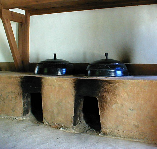 has two ondol fireplaces for cooking. Again the flue runs under part of the rest of the house so as not to