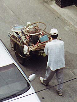 This cart operator collects recyclable trash in Kangnung (Gangneung). I shot this picture from the window