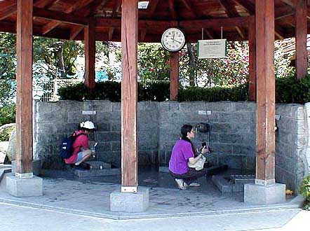 sticks his chopsticks into them. Good thing Margaret wasn't too bothered by this. She didn't worry much about using the public cup at this spring, either. It's near the river where she used to take her morning walks with Mrs. Kim, the director of Best Language Institute. Margaret lived in Mrs. Kim's spare room for the first 3 months she worked in Kangnung (Gangneung).