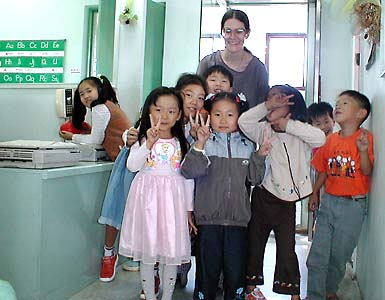 via her dialup, and wandered round Kangnung (Gangneung) seeing the sights and shooting pictures. One afternoon, I stopped by the hagwon just in time for class to let out. So here are her kids, just being kids like you find anywhere in the world -- except that Korean kids are (1) IMO some of the world's cutest; and (2) always have this instant and apparently instinctive response every time they see a camera.