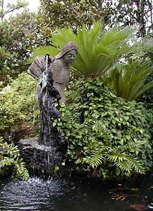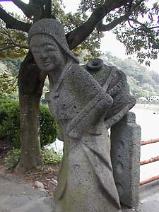 days, this meant a fair bit of hauling. We know this because of all the water carrier statues, or mulhobok, on Cheju. Here are a couple. The one on the left is located in Hallim Park, the other one near Chonji Waterfall.