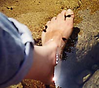 But the tadpoles and I had a field day. They were the friendliest little things! We could catch them in our hands and look at them closely (no legs yet, but we did see one that had graduated into a frog), and I had about 8 or 10 of them nibbling on my feet. Boy, did that tickle! Most of them seemed to be eating algae off the rocks or fallen leaves, and I don't know what it was they were finding on my feet, but they sure were industrious. After we finished playing with the tadpoles, we headed back. I still haven't made it to the peak, but it's probably just as well. Carol said it's very hard to get there, and we still had over 5 kilometers to go. Now, 5 km doesn't sound like all that much to me, but when we got back to the car she said we had walked 3 1/2 km today, and it took us five hours. It felt like a lot more than 3 1/2 km, too. In spite of the trails, steps and bridges, it can be pretty rough walking, and it got rougher past the waterfall. Carol says it's much more difficult up to the peak. But since I seem to go a little further every time I go there, I might make it by the end of the summer. We both decided we needed a nap when we got home.